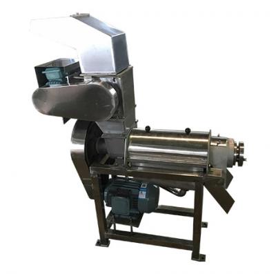 破碎的果肉、果汁和果皮通過料斗進入螺旋榨汁機,而螺距則隨著螺桿底部直徑沿出渣口方向的逐漸增大而減小。當所述材料被螺旋向前推時,所述螺旋空腔的體積減小,形成所述材料的擠壓。螺旋主軸的旋轉方向是順時針方向從進料料斗到渣槽。當原料加入進料料斗并在螺桿推進下加壓時,擠壓的果汁通過濾網流入底部的果汁架,而廢料則通過螺桿與壓力調節的錐形部分之間形成的環形間隙排出,而間隙的大小可以通過壓力調節頭沿軸向的移動來調節。按順時針方向使用(從設備排渣槽到進料桶末端的手輪軸承座,壓力調節頭在左側,間隙縮小,反之,間隙變大。)改變間隙的大小,即調節排渣阻力,可以改變排渣率,但如果間隙過小,部分渣粒和果汁會通過濾網與果汁一起擠出。雖然果汁增加了,但果汁的質量相對下降,而間隙的大小應取決于用戶的具體工藝要求。從而達到自動分離果汁和礦渣的目的。